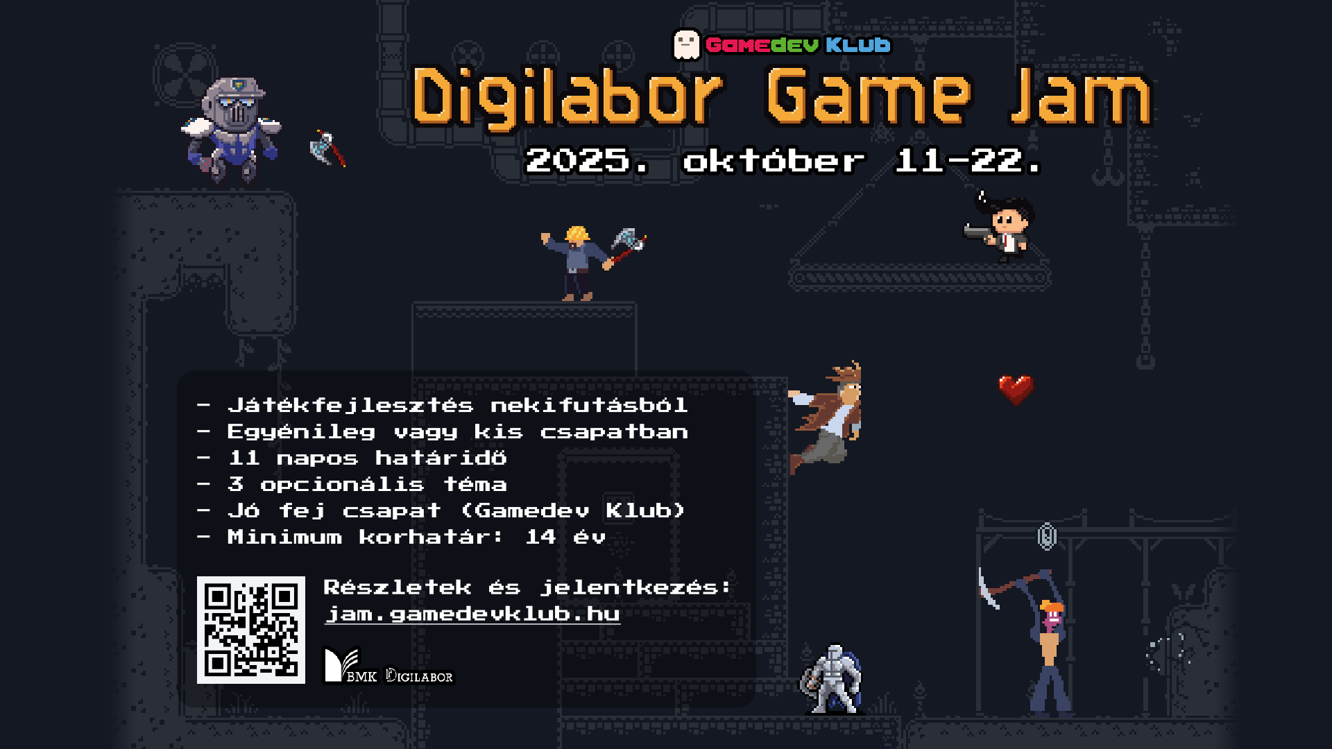 Ha szeretnél segíteni abban, hogy a Digilabor Game Jam minél több emberhez jusson el, kérlek oszd meg az alábbi képet másokkal.